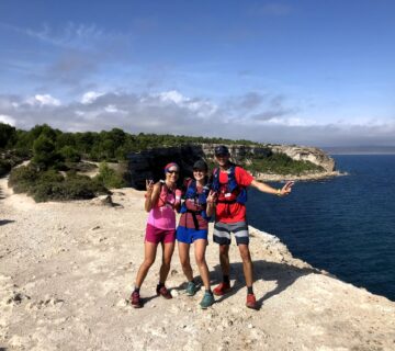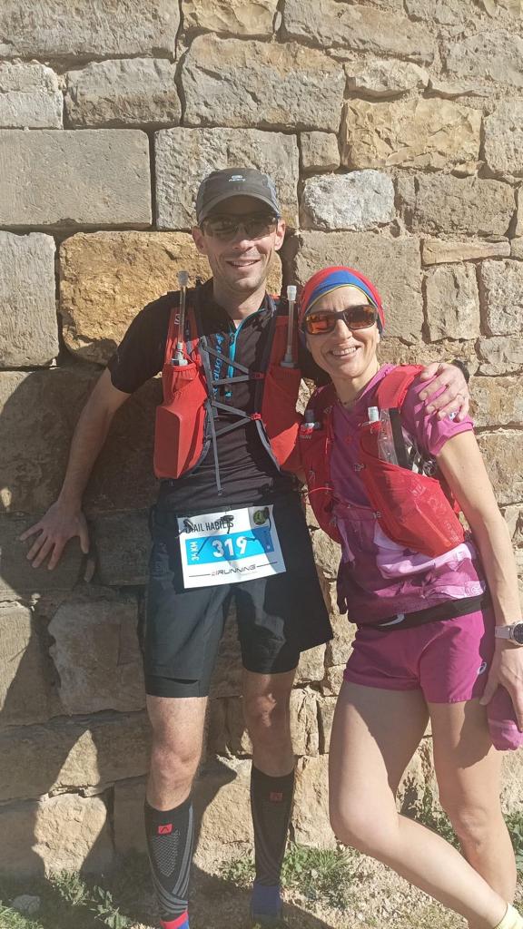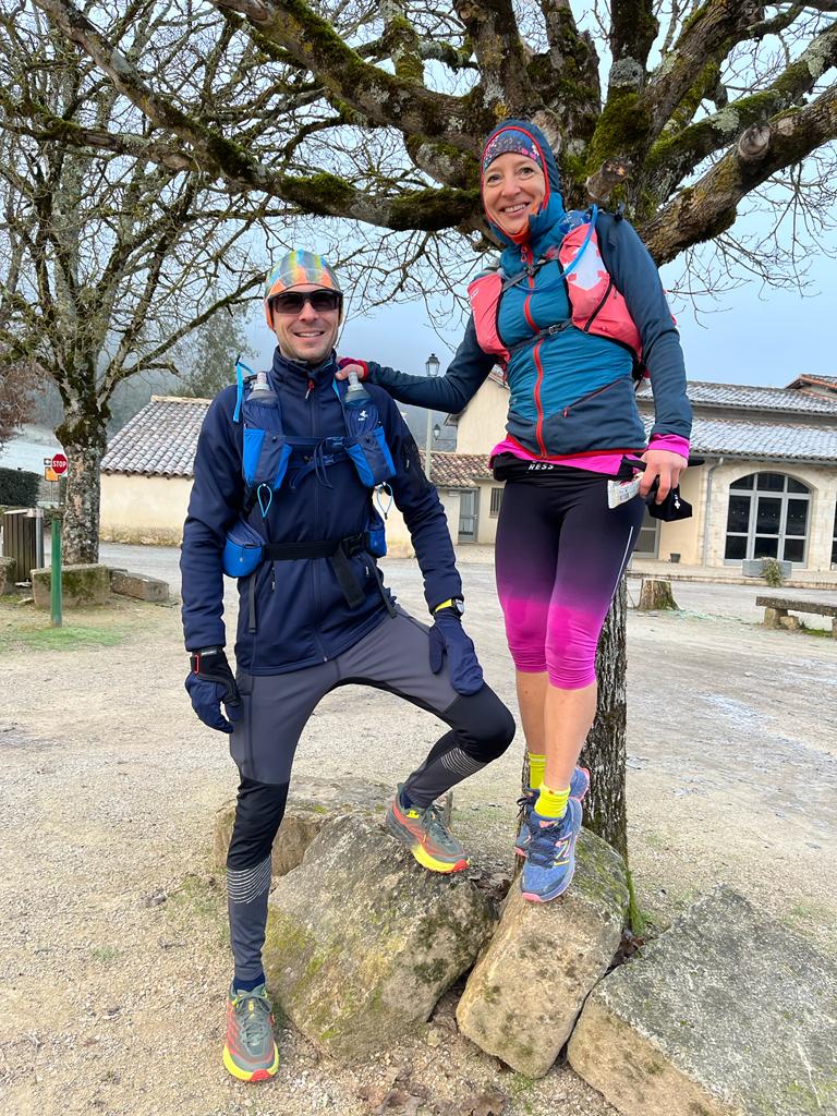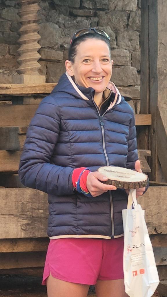 3-2-1-partez ! La course commence par une descente sur du bitume, puis laisse place rapidement à descentes très sinueuses ! Ah !!!! Ces sentes sont semées d’embûches : racines, cailloux.. qui obligent à rester très très vigilants !! Bam !! après 5 km de course, petit déséquilibre, glissade et chute à plat ventre. Qu’à cela ne tienne, je me relève et repars de plus belle ! Le paysage défile, magnifique, tantôt dans la forêt, tantôt une vue dégagée et magnifique que je ne prends pas le temps de savourer. Plus je cours, plus je finirai vite ! Voilà ce que je me dis quand je commence à fatiguer !! Alors, je poursuis les sentes, les côtés raides, les descentes et me laisse porter par ma rengaine « plus je cours, plus je finirai vite » ! Plus que quelques kilomètres… une longue descente… la peur de la blessure/de la chute m’envahit en me laissant entraîner par la pente… alors je ralentis… je me laisse doubler, tant pis.. 😞.. le plus important pour le marathon des sables : rester entière ! Ah !! enfin !! la dernière montée… éprouvante, raide, chaude… et une fille devant moi… ce challenge d’essayer de la doubler me donne un regain d’énergie ! Comme si je remettais un moteur en route à l intérieur de moi, je sens tout mon corps se réveiller, s’activer, mes jambes marcher vite puis se mettre à courir… plus je vois la distance entre elle et moi se raccourcir, plus mes jambes accélèrent… je la double… la montée est de plus en plus forte… et je vois au loin mes 3 amours qui m’encouragent ! Alors je garde la cadence, Nico m’accompagne, me donne de la force et ça y est je passe la ligne d’arrivée !!! Ouf !!! Je souffle et je respire !! J’entends au micro: Heintzelmann Magali, 2ieme féminine !! Alors là je saute de joie, je ne m’y attendais pas !!! Il va falloir fêter ça !